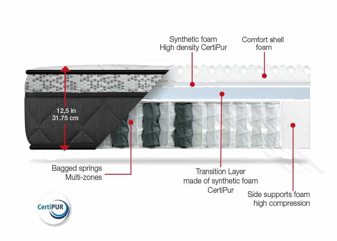 Discover the Crépuscule Mattress, a revolution in the world of sleep. This firm mattress designed with high-precision multi-zone pocket springs provides optimal support for every part of your body. Our cutting-edge technology guarantees perfect firmness, providing deep and restorative sleep.