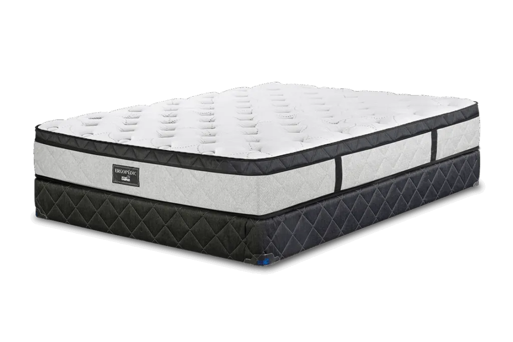 For ultimate comfort, our Ergopedic mattress features a euro-style pillow top, delivering an extra layer of plushness that cradles you in luxury. This top-notch mattress offers a medium-firm feel, striking the perfect balance between support and softness. It’s like sleeping on a cloud that supports you.