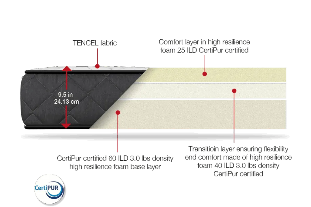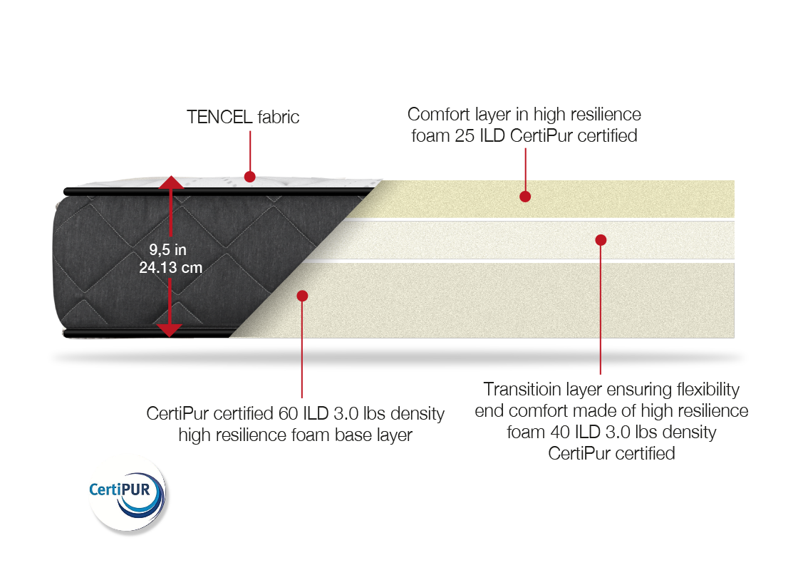 The combination of High-Resilience Foam and a soft yet high-resilience comfort layer ensures restorative sleep night after night.