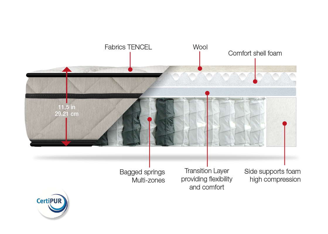 Discover our Hotel Collection Mattress, designed to deliver an exceptional sleep experience. With this medium-firm mattress, you can finally sleep like you’re in a hotel—right at home. Our mattress is the result of meticulous engineering. Thanks to its individually pocketed multi-zone spring construction, it provides unparalleled support.