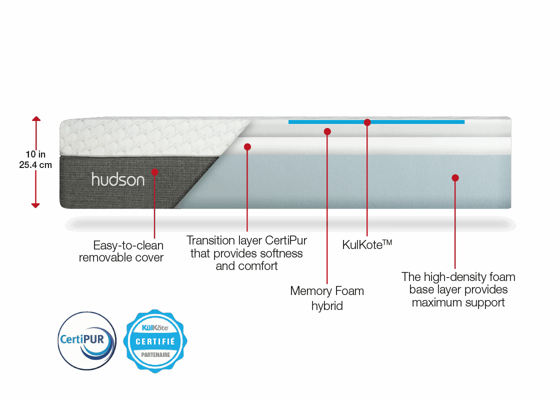 Opt for ultimate well-being and discover the pleasure of tailor-made sleep with Hudson Mattress Semi-Firm. Treat yourself to the perfect combination of comfort and technology today.