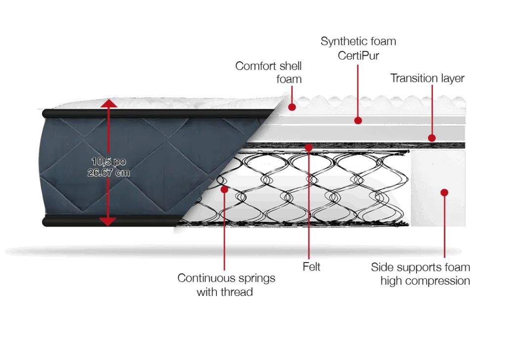 Buying from a Quebec manufacturer is a plus for us. The mattress is comfortable. The sales and delivery staff were courteous.