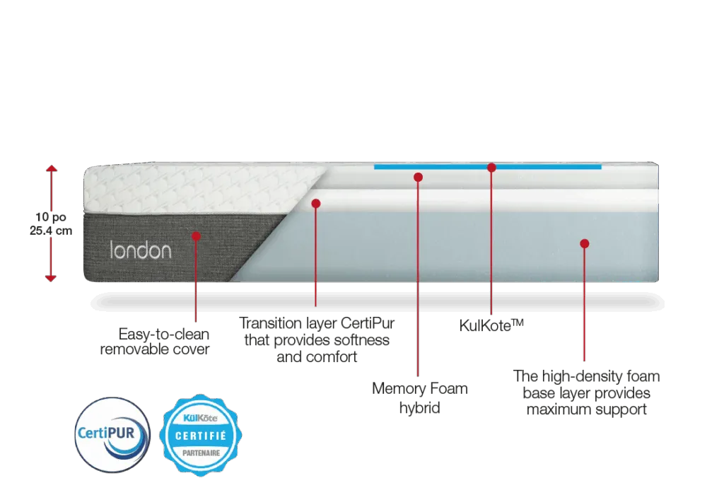 Expertly designed, it combines hybrid memory foam with innovative Kulkote technology, which regulates temperature for personalized comfort. This combination ensures restorative sleep, perfectly adapting to the contours of your body.
