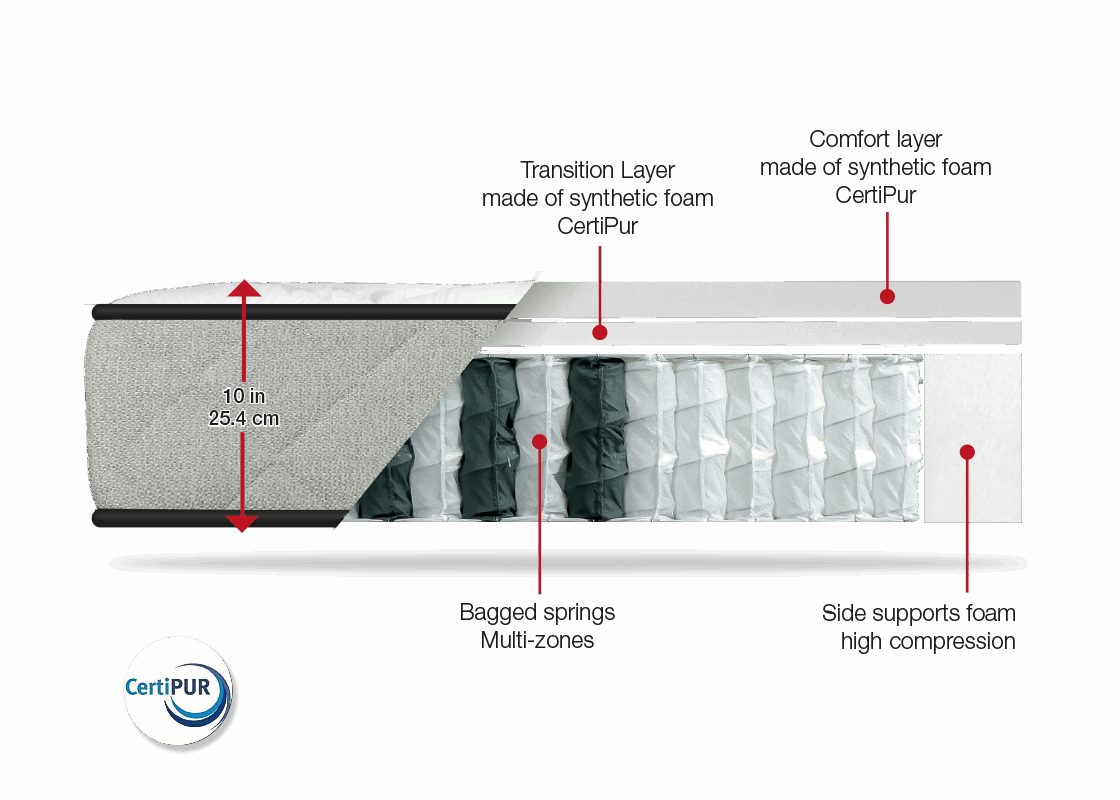 Thanks to its numerous quality individually pocketed springs, it ensures unrivaled integrity of body support. Lumbar support is its strong point, providing optimal comfort for your back.
