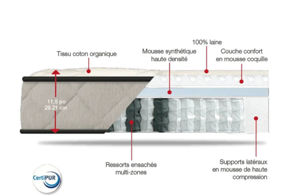 - Ressorts ensachés individuellement multi zone