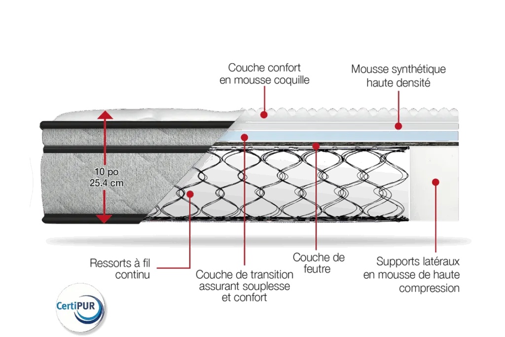 Acheter d'un manufacturier du Québec est un plus pour nous. le matelas est confortable. Le personnel du service des ventes et de la livraison étaient courtois.